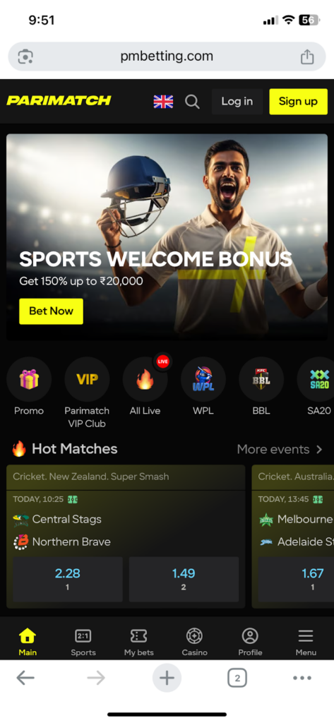 - Step 3: Register on the Parimatch site if you’re new or log in if you have one.